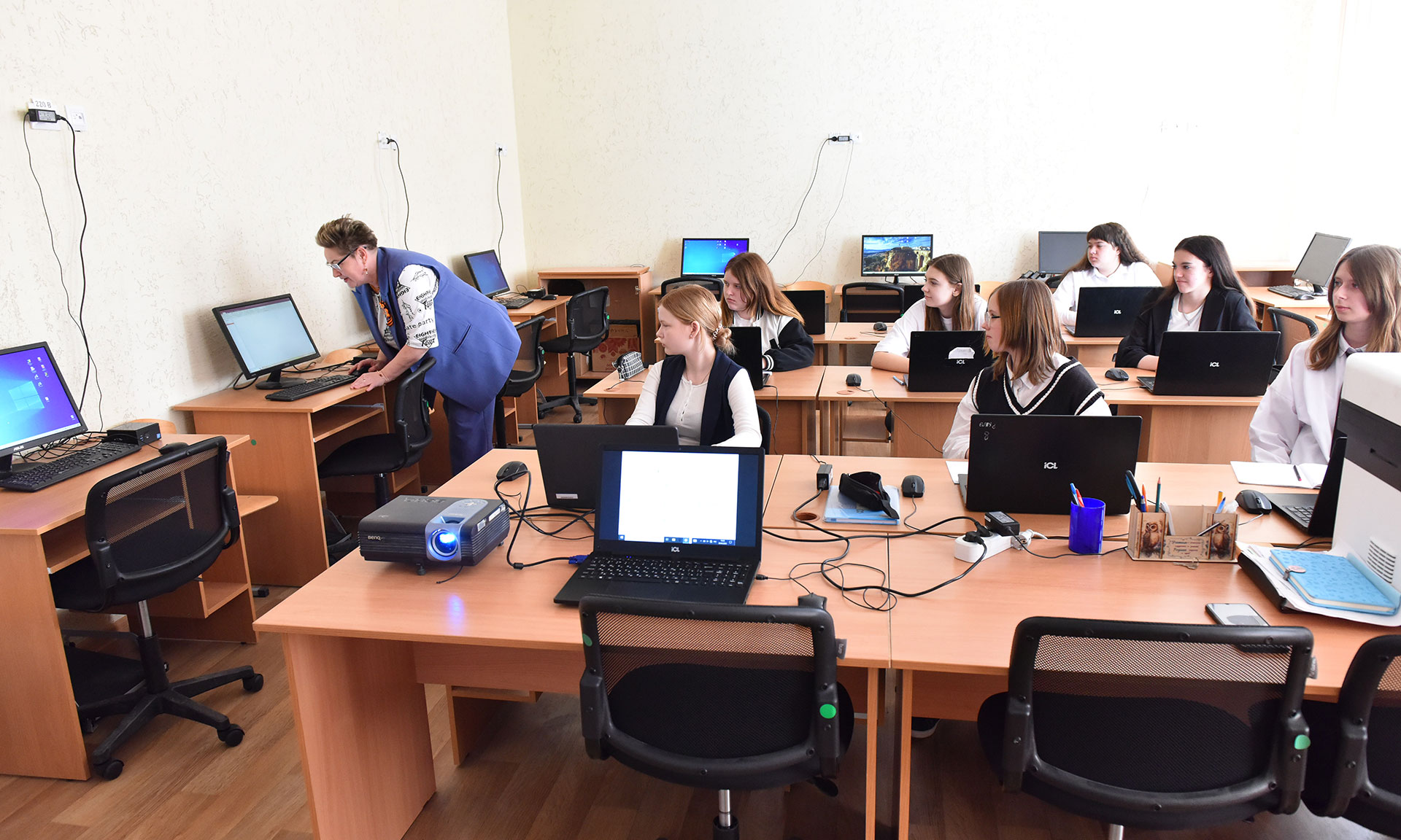 Школа 70-х годов постройки такого ремонта никогда не видела: полностью обновлена крыша здания, проведены комплексные ремонты всех учебных классов и общественных зон, пищеблока. Новые лестницы, спортзал и входная группа, заменены системы отопления, водоснабжения, водоотведения, электроснабжения — получилась практически новая школа, старые остались только стены. В классах — новая мебель и самое современное оборудование.