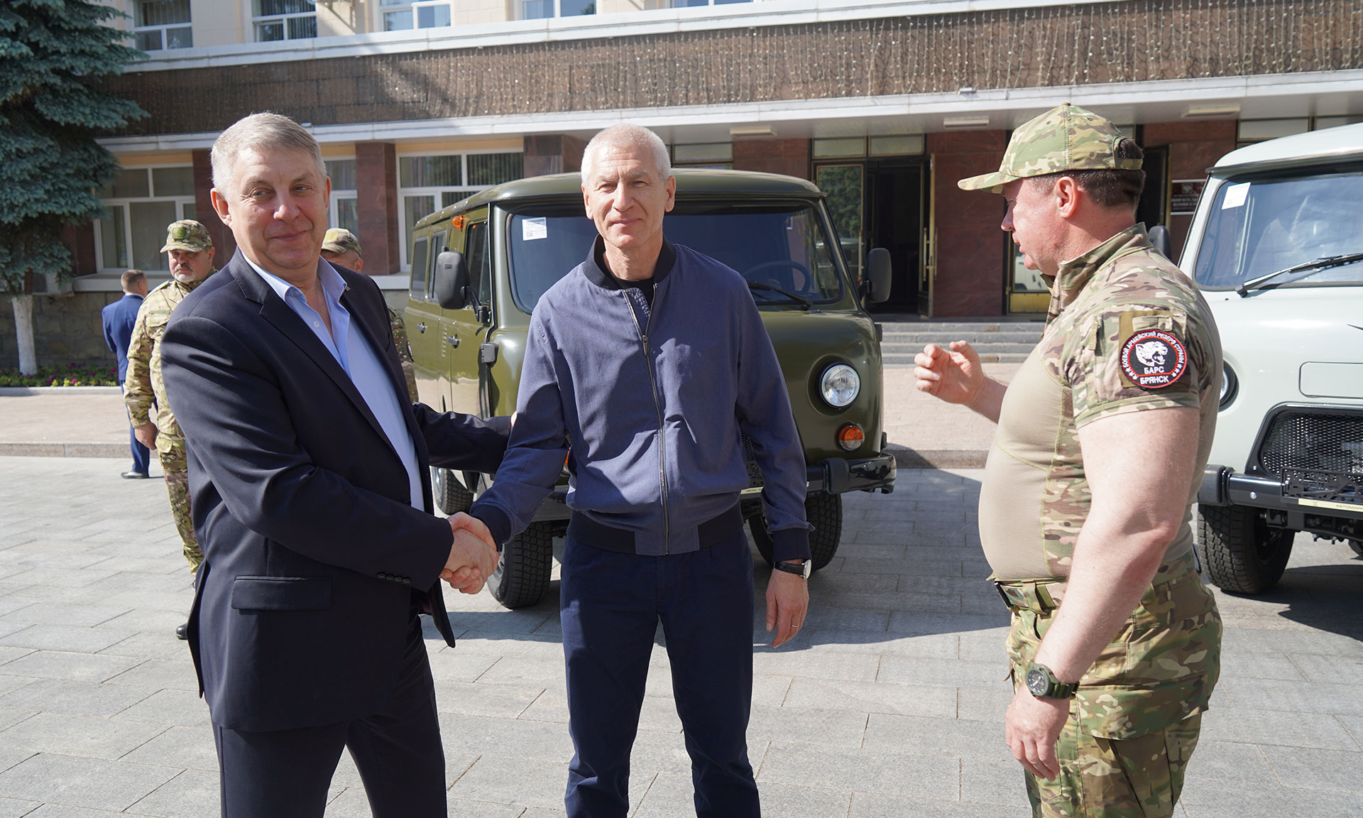 3 июня Губернатор Александр Богомаз и председатель Комитета Государственной Думы по физической культуре и спорту Олег Матыцин вручили добровольческой бригаде «БАРС-Брянск» ключи от автомобилей.