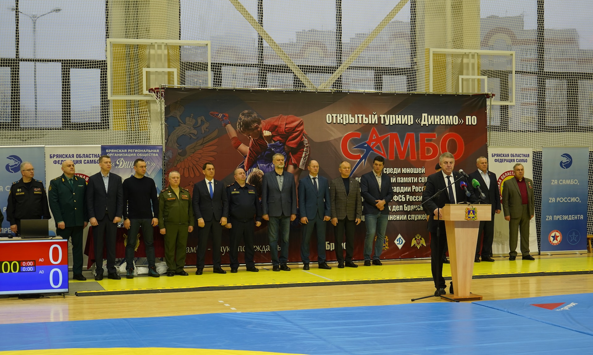 В открытии соревнований приняли участие Губернатор Александр Богомаз, председатель Брянской областной Думы Валентин Суббот, главный федеральный инспектор по Брянской области Андрей Дьячук, мастер спорта СССР, заслуженный тренер РСФСР, судья международной категории по самбо экстра-класса, почётный гражданин города Брянска Отар Михайлович Кацанашвили, начальник Управления Росгвардии по Брянской области, генерал-майор полиции Иван Ванчугов, прокурор Брянской области Владимир Мосин, начальник управления ФСБ России по Брянской области, генерал-майор Сергей Воронин, руководитель следственного управления Следственного комитета Российской Федерации по Брянской области Алексей Кузьмичев, начальник Брянской таможни Сергей Санакоев, начальник УФСИН России по Брянской области Алексей Мишанов, одиннадцатикратный чемпион России, трехкратный чемпион Европы, десятикратный чемпион Мира, дважды обладатель кубка Мира, заслуженный мастер спорта России, почетный гражданин Брянска Артем Осипенко, депутат Государственной Думы Николай Щеглов, президент региональной физкультурно-спортивной общественной организации «Брянская областная федерация самбо» Алексей Рассыльщиков, руководители силовых структур Брянской области, заместители Губернатора Брянской области, руководители города Брянска, представители Брянской епархии, ветераны и личный состав Управления Федеральной службы войск национальной гвардии по Брянской области и органов внутренних дел, члены семей (родители) погибших военнослужащих и сотрудников органов правопорядка.