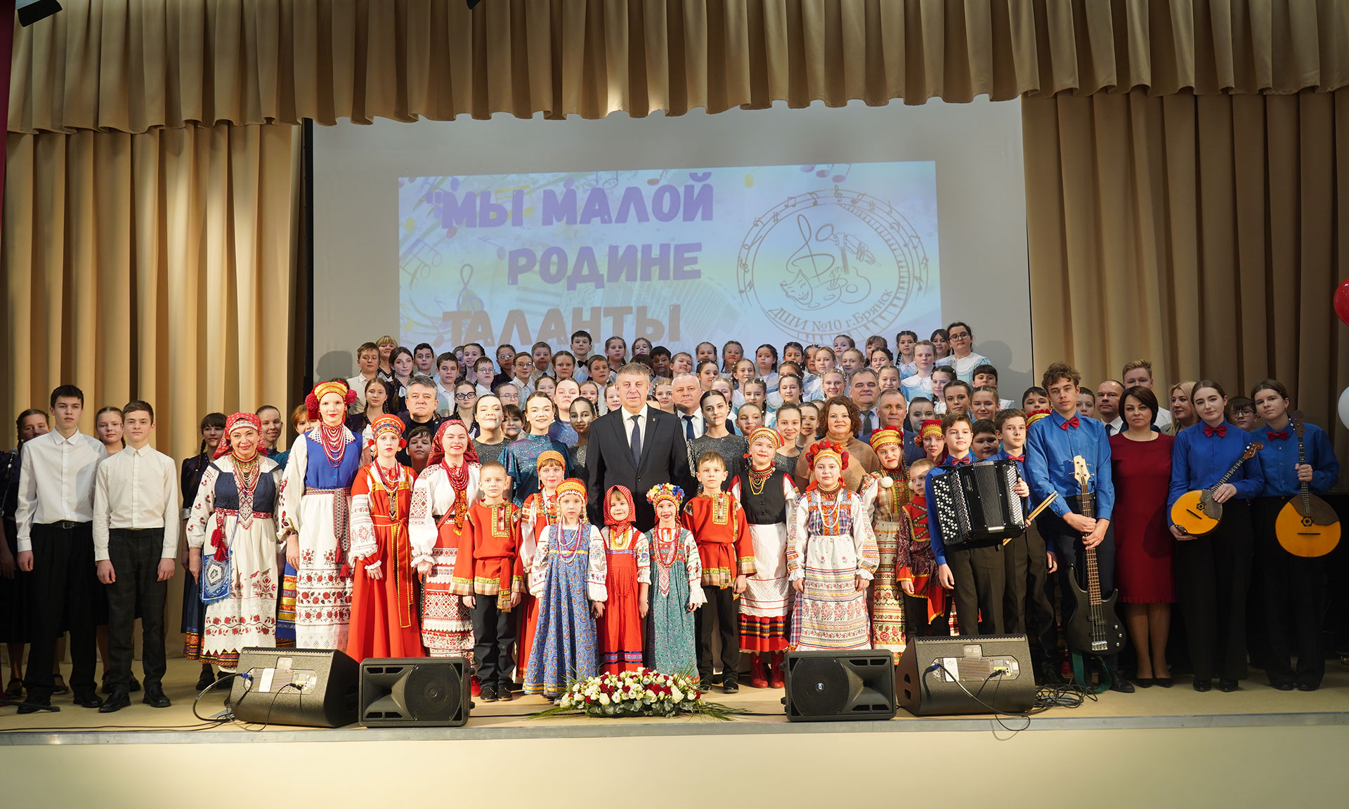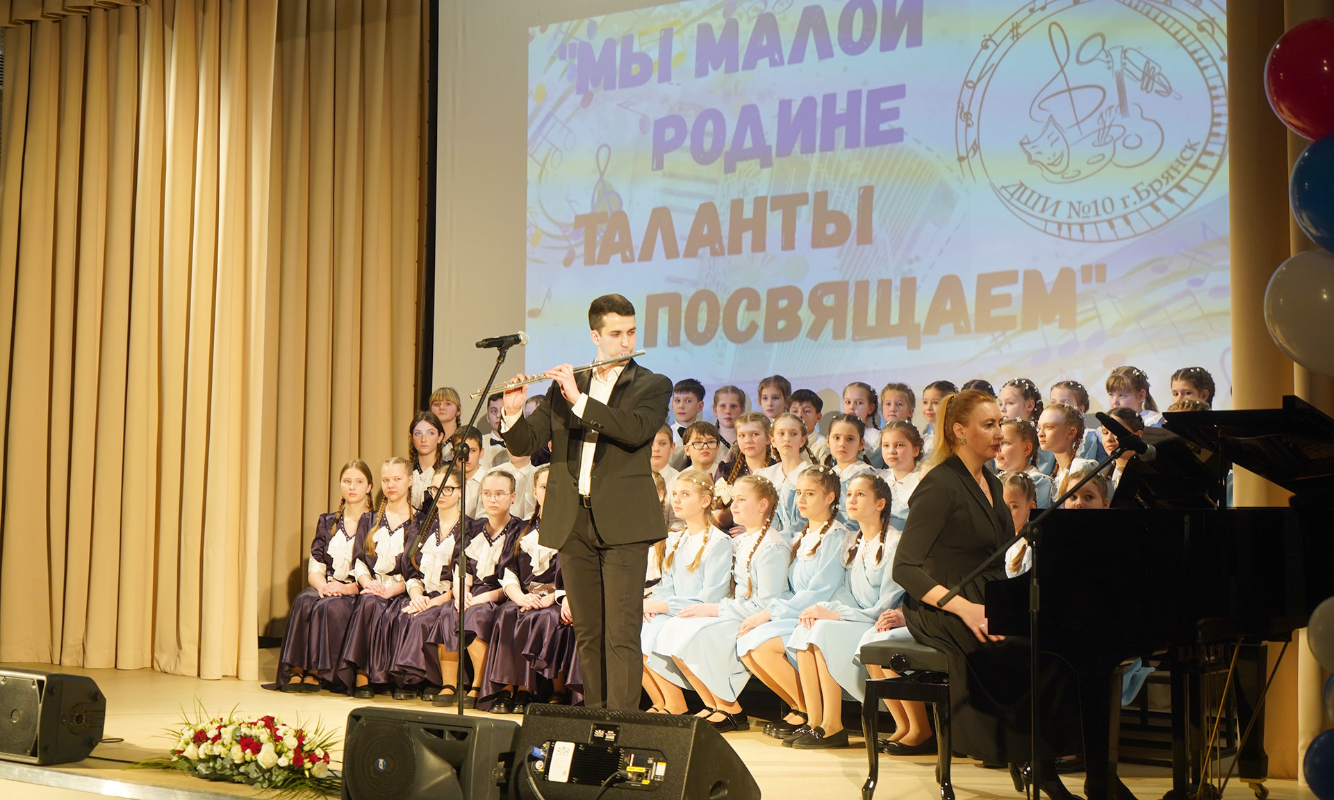 После официальной части гостей торжества ждала подготовленная воспитанниками и преподавателями детской школы искусств № 10 обширная концертная программа под символичным названием «Мы малой Родине таланты посвящаем».