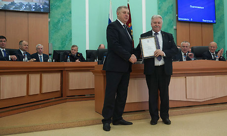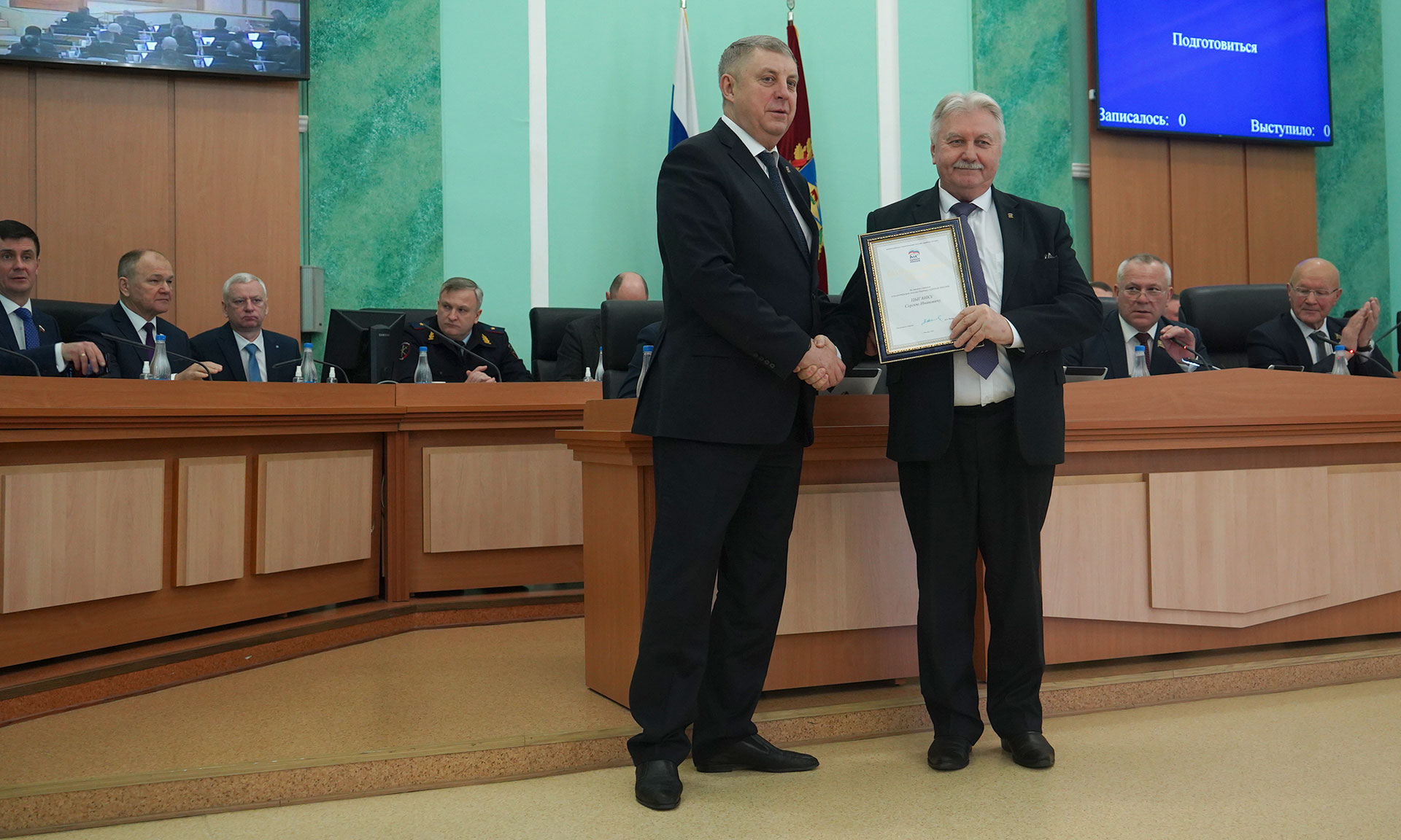 Председатель Брянской областной Думы Валентин Суббот вручил удостоверения и нагрудные знаки гражданам, удостоенным почетных званий «Заслуженный изобретатель Брянской области» и «Заслуженный работник культуры Брянской области».