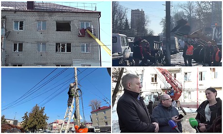 11 марта Губернатор Брянской области Александр Богомаз, председатель Брянской областной Думы Валентин Суббот, заместитель Губернатора Денис Амеличев, глава Брянской городской администрации Александр Макаров побывали в пострадавших от ракетного удара домах, пообщались с жителями.