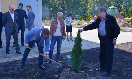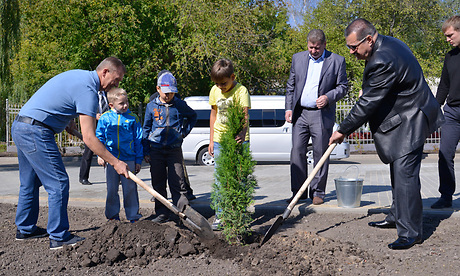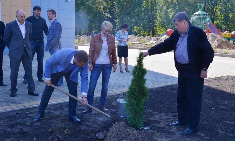 6 сентября Губернатор Николай Денин, Председатель областной Думы Владимир Гайдуков и известные спортсмены высадили туи у теннисного центра в Бежице.