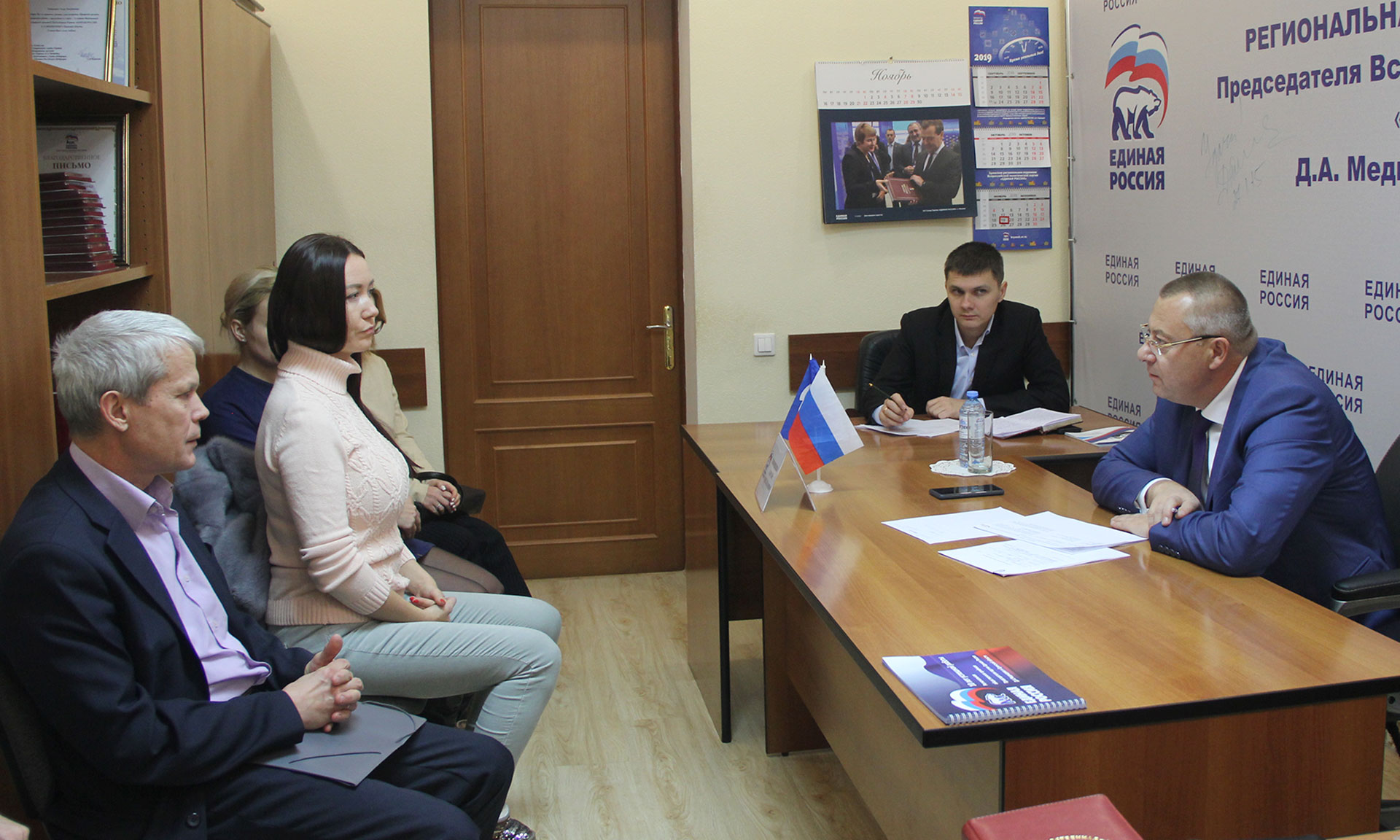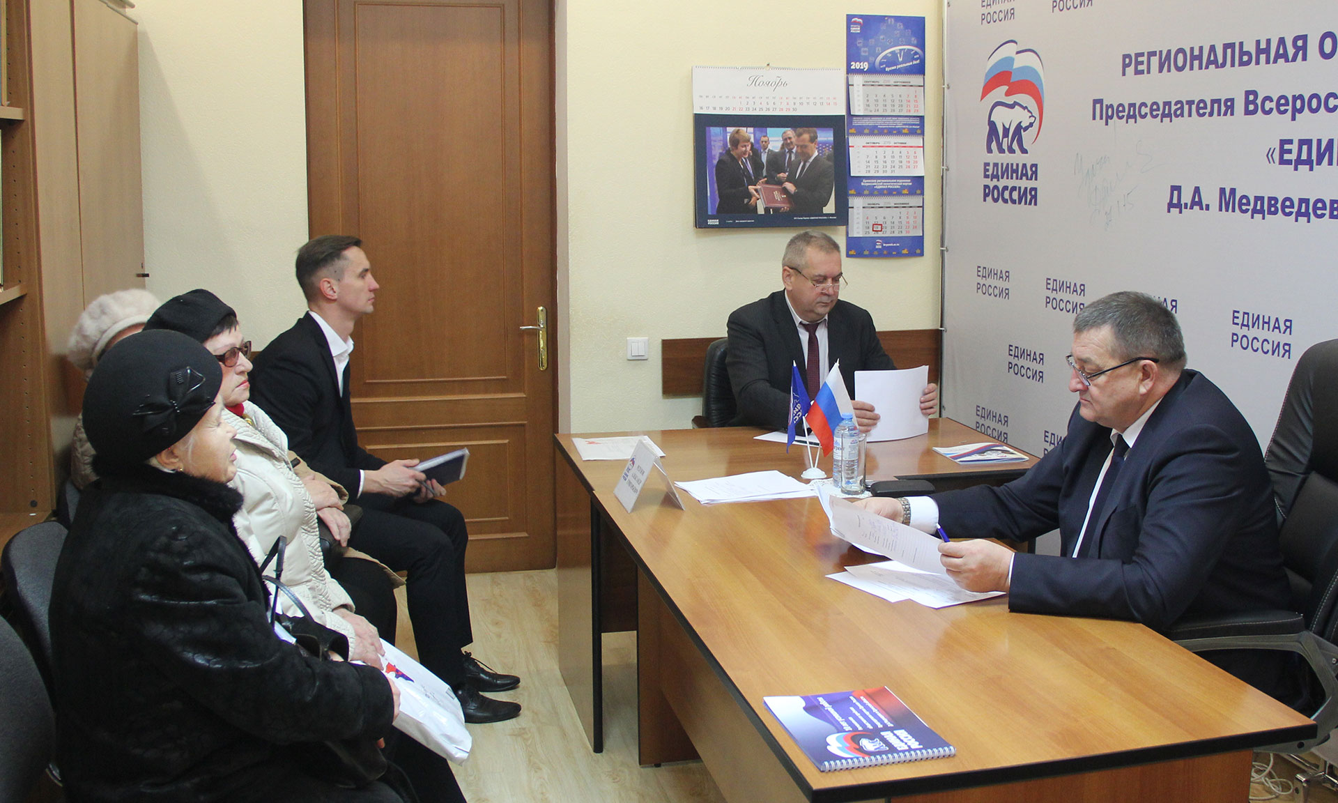 26 ноября в общественной приемной Председателя партии «Единая Россия» Д. А. Медведева состоялся прием граждан, который проходит в преддверии 18-летия Всероссийской политической Партии «Единая Россия» в рамках Единой недели приёма граждан. Прием граждан организован с 25 ноября по 1 декабря в региональной и местных общественных приёмных Д.А Медведева, а также на дополнительных площадках, открытых в каждом населённом пункте региона.